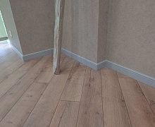 Способ монтажа: плинтус из полистирола высокой плотности запиливается под 45 градусов при помощи ножовки и стусла. Для аккуратного оформления стыков используется специальный клей-шпатлёвка Adefix F, с помощью которого можно замазать царапины и вмятины.